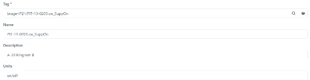 As an option, once a tag is selected Name, Description and Units retrieved from a data source can be modified by a user.