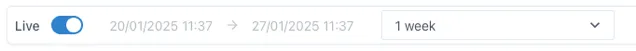 If you select a specific date in the Date section, the Live mode will be turned off and the data will not be updated, rather displayed for a fixed time frame according to your selection.