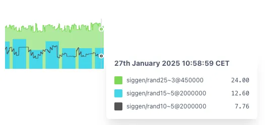 In this example, both charts are synced so when you hover over one of them, it shows the value of both charts. This allows you to evaluate several trends at the same time across charts.