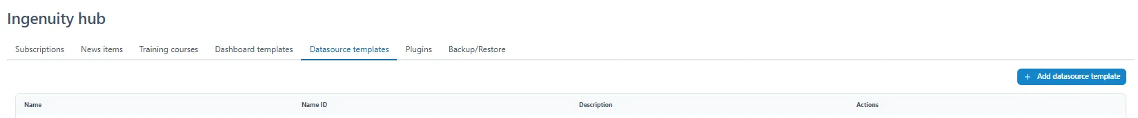 Select the “Datasource templates” tab in the Ingenuity hub: